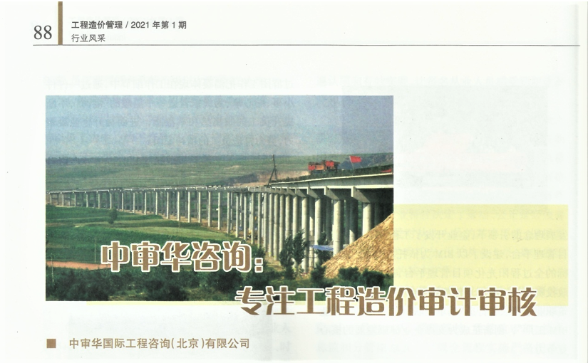 《工程造价管理》杂志是住房和城乡建设部主管、中国建设工程造价管理协会主办的全国工程造价行业学术期刊,该期刊2021年第一期以“中审华咨询:专注工程造价审计审核”为标题,对我单位进行了介绍。